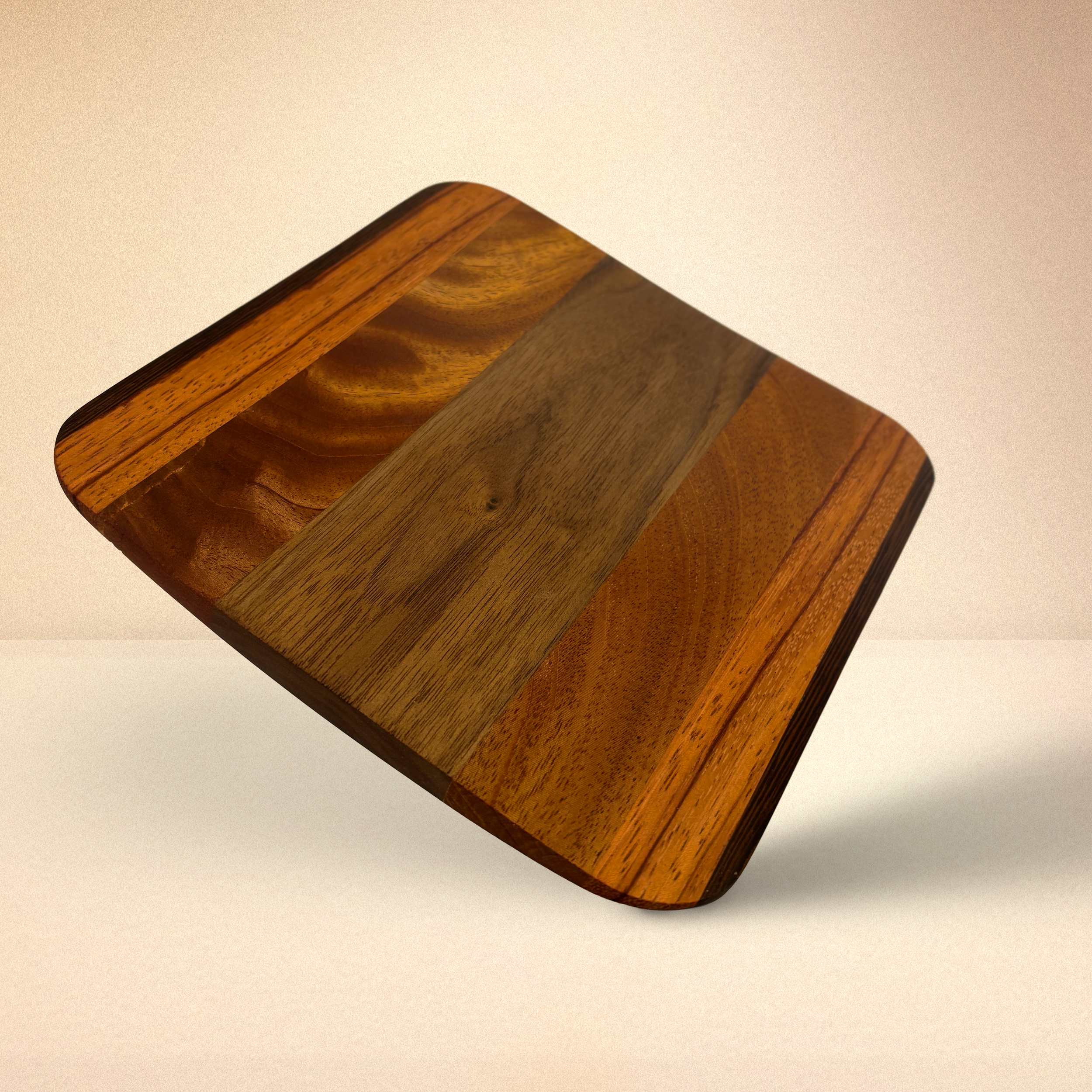 Wenge, Red Zebra, African Mahogany, and Walnut with a food safe finish.